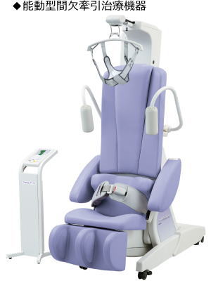 ![]() ソファに腰掛けるような姿勢から自動的に牽引に最適なポジションへリクラ イニングして設定された強さで頸椎や腰椎を牽引します。 |